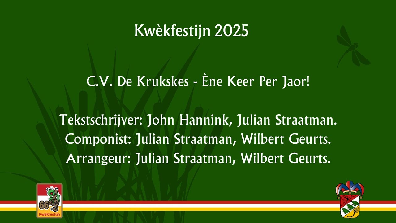 CV De Krukskes heeft het 66e Kwèkfestijn gewonnen. Het nummer 'Ène Keer Per Jaor!' kreeg de minste punten van de jury. En met de minste punten in de finale ben je de winnaar.